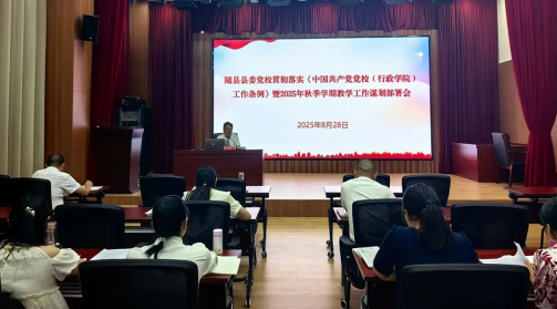 近日,縣委黨校召開貫徹落實《中國共產黨黨校(行政學院)工作條例》暨2025年秋季教學謀劃部署會,認真學習新修訂的《中國共產黨黨校(行政學院)工作條例》,研究部署學習宣傳貫徹工作,為秋季學期教學工作明確方向、理清思路。(何雪蓮)