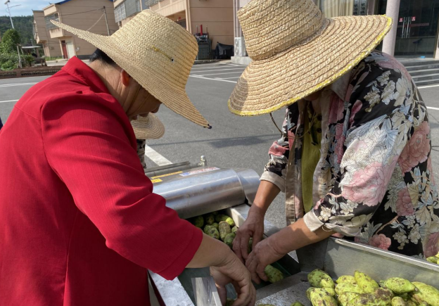 作為村里規?;庸さ牡诙?,今年依托“專業合作社+村股份經濟合作社+農戶”模式,不僅有新添設備護航,更有干群協作的堅實支撐。村黨支部書記唐加軍介紹:“八月瓜采摘期可吸納200余人就業,人均增收近2500元,今年新增的加工設備,讓我們在豐收季多了重保障?!?/p>