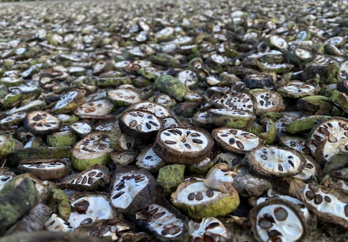 隨著每日5000斤果片的產出,原有曬場很快告急。唐加軍迅速召集村干部,利用午休時間清理村辦公室前200平方米場地,除草清碎石并開辟臨時曬場。更關鍵的是,今年晾曬有了“雙保險”:晴天時,20余名村民分兩組作業,清晨翻曬、傍晚攏果,確保果片充分受曬;遇陰雨天,新鮮青果可存入500噸容量的冷庫暫存,連陰雨時則啟動烘干設備,徹底解決去年因陰雨損失20%果實的困境。
