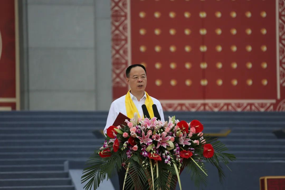 身著56個民族服飾的炎黃子孫唱響《炎帝大歌》,頌揚炎帝精神的贊歌回蕩在烈山之上。