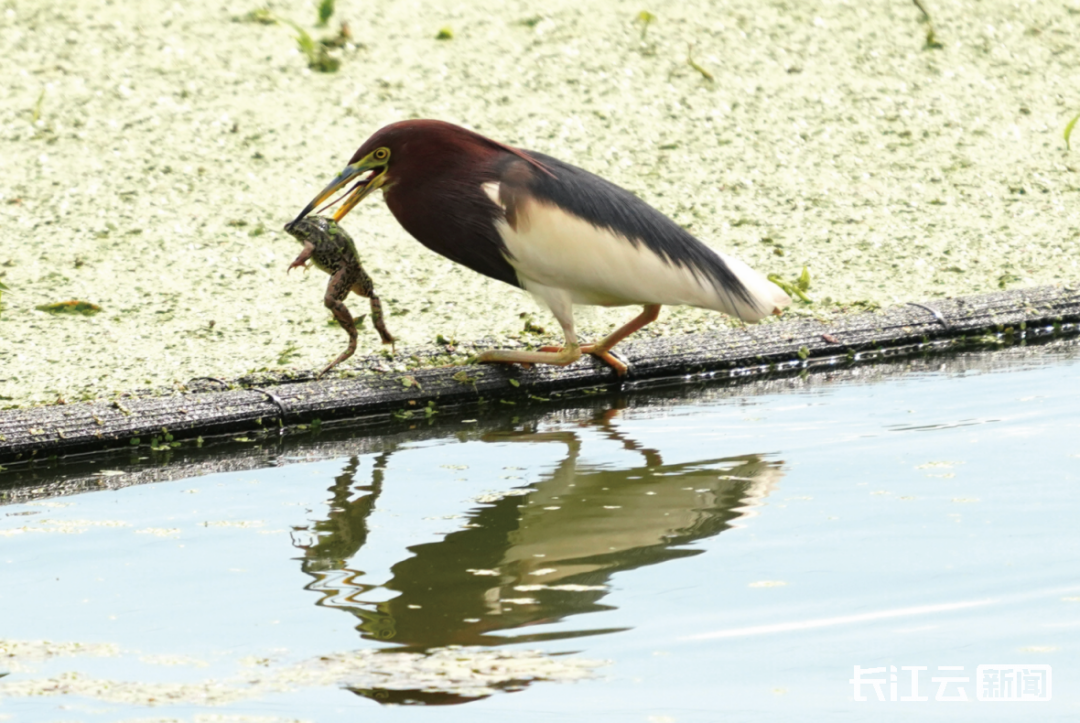 “長腿紳士”池鷺與白鷺水岸邊,身著樸素“麻衣”的池鷺與通體雪白的白鷺形成鮮明對比。孩子們目睹它們優雅踱步,長喙如閃電般刺入水中?!翱?,白鷺的脖子縮成了‘S’形,隨時準備出擊!”一個小男孩模仿著,逗得大家直樂。